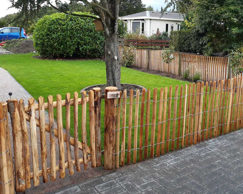 Vi anbefaler at montere hegnet af robinetræ på stolperne med rustfri skruer 4,5 x 60 mm. På den måde fastgør du hegnet mod stolpen og du undgår at hegnet ‘hænger’. Robinie er en meget hård og holdbar træsort og du skal derfor først bore for for at undgå at stavene flækker.